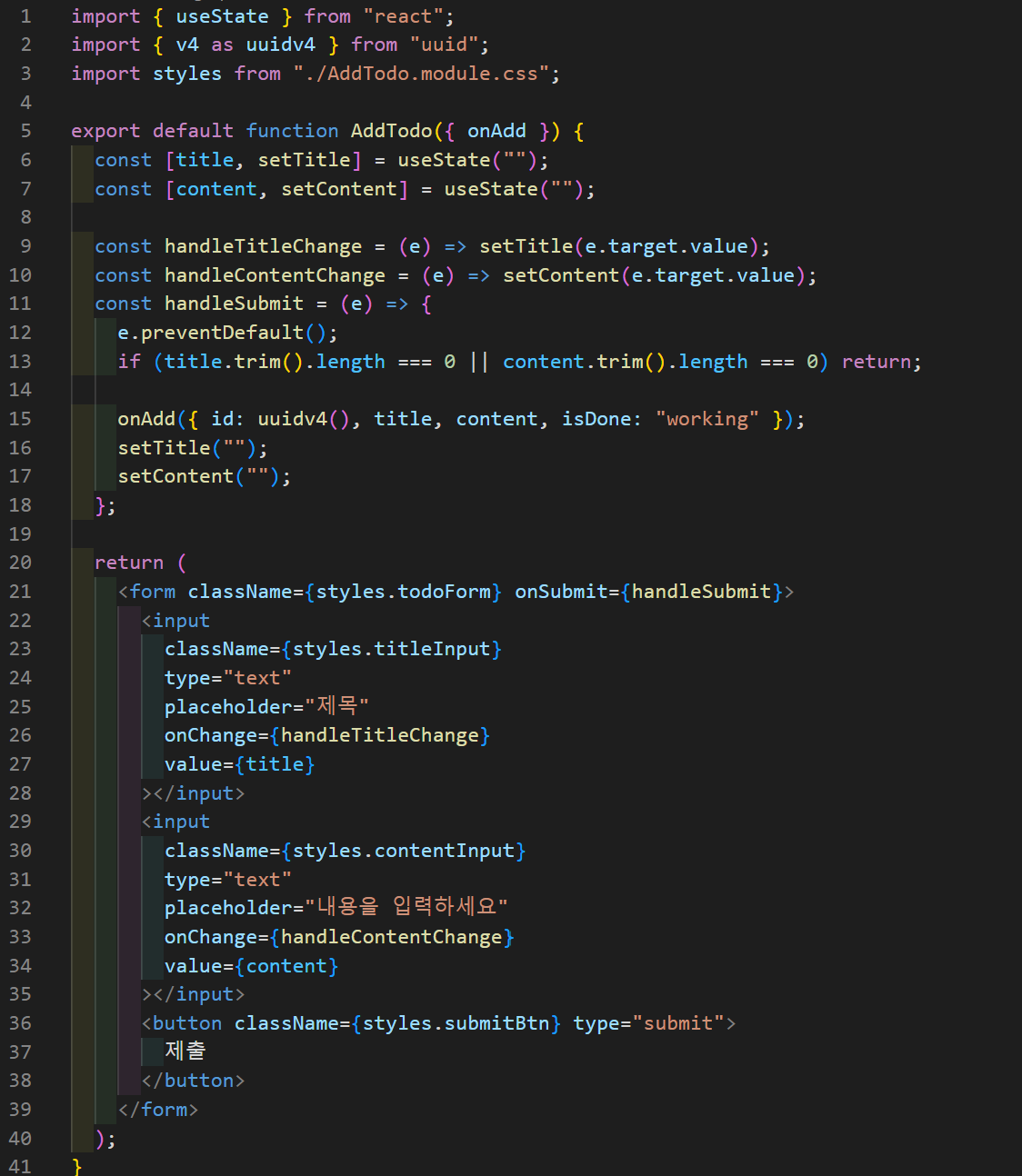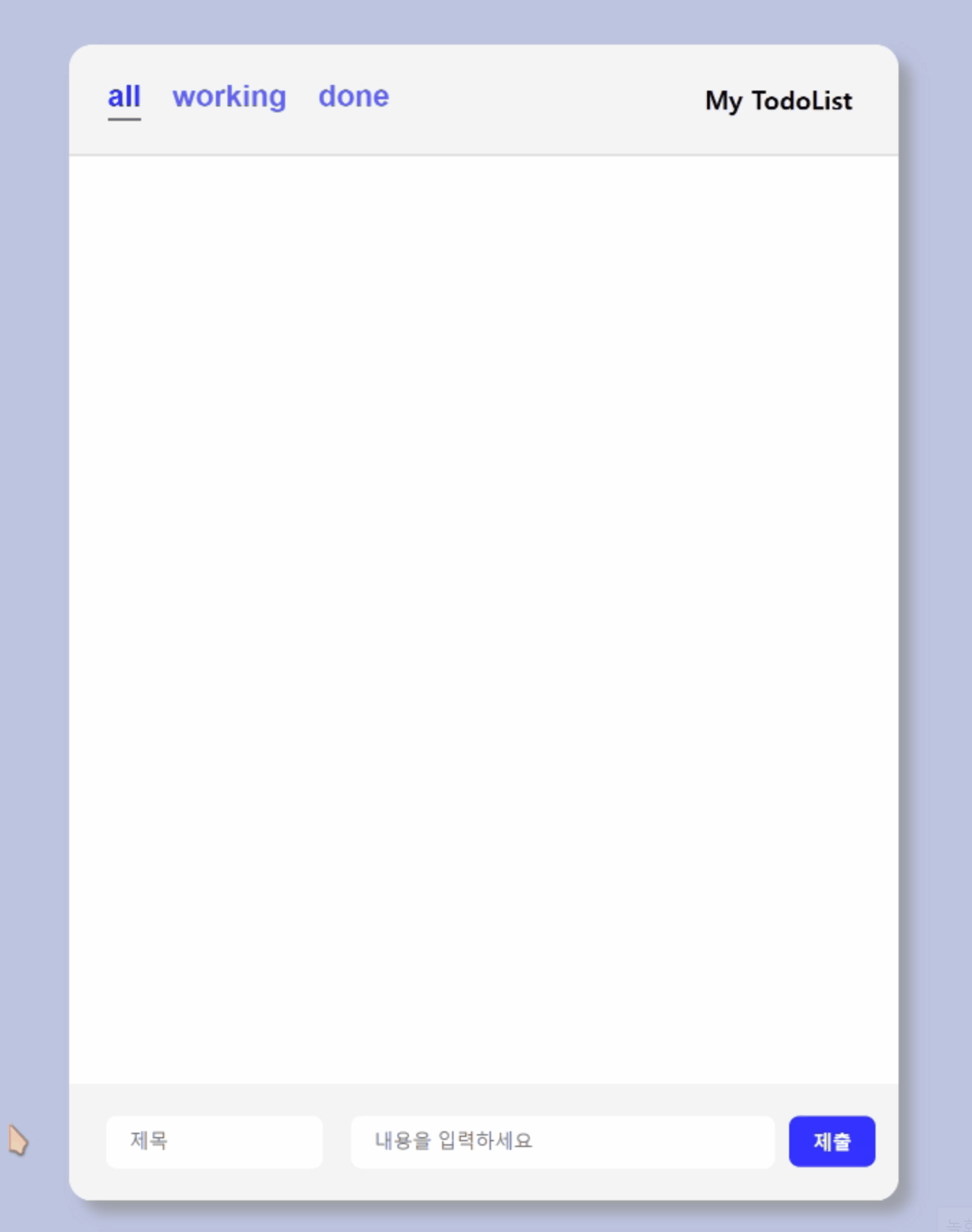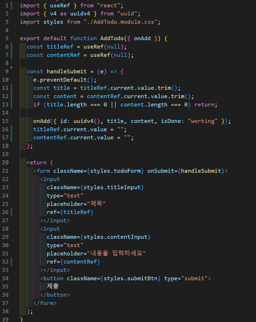 - 투두 리스트에서 할 일을 작성한 후, 자동으로 title input에 커서를 두면 편의성이 높아질 것 같아서 추가