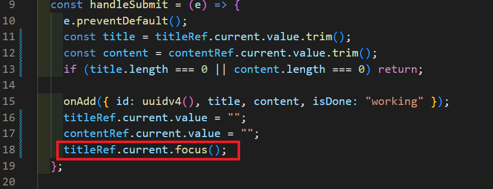 - useRef만 사용하니 제출 후에만 input에 커서를 두는 것이 아쉬워 개선