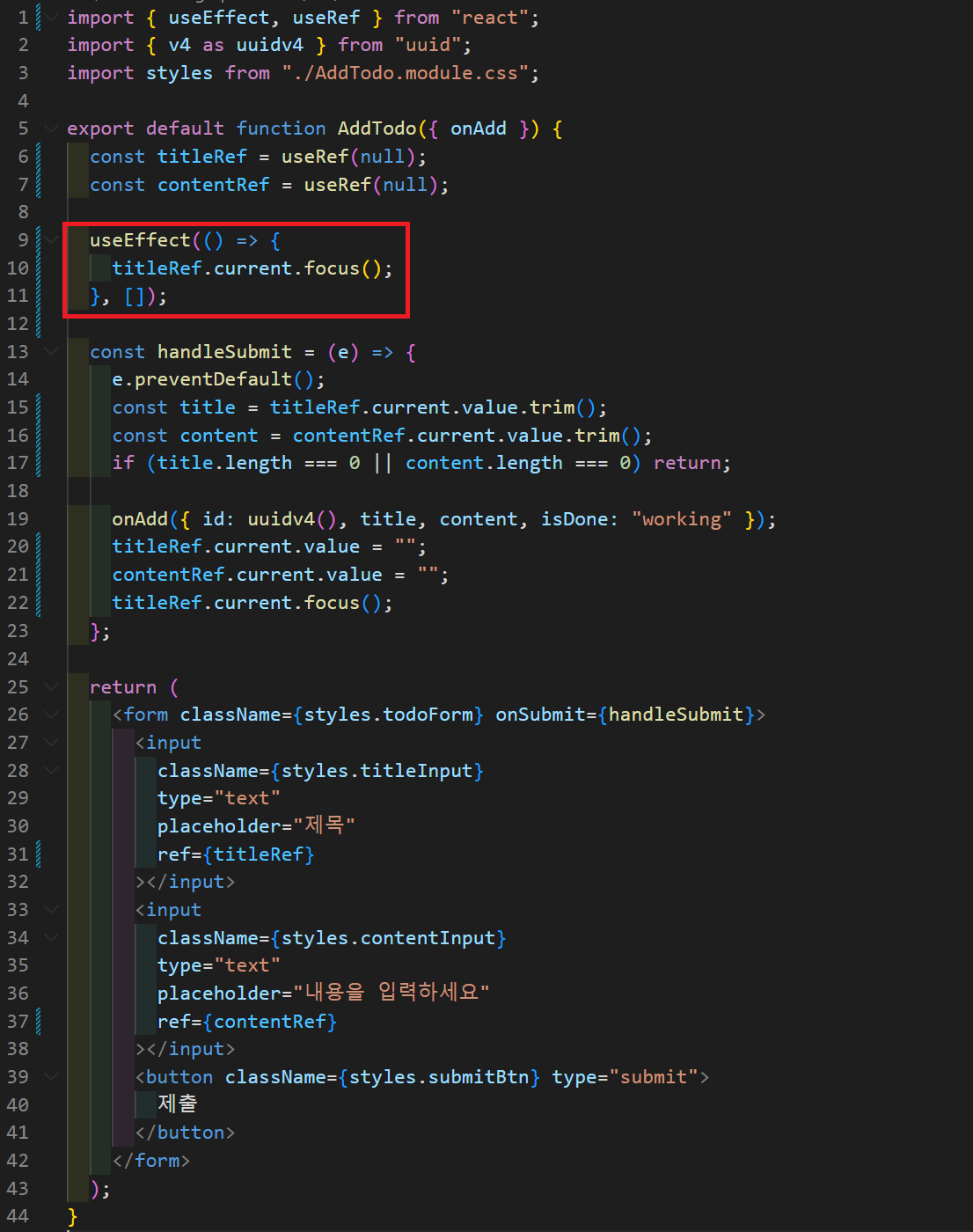 4. useEffect를 이용해 초기 렌더링시에도 <input>에 focus 두기