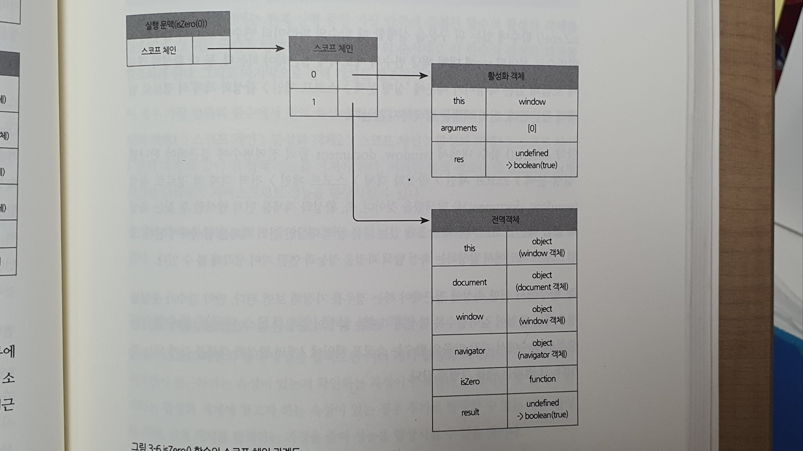 - 스코프 체인: 함수를 실행하면서 어떤 속성(변수, 객체 등)에 접근해야 할 때 해당 속성을 효율적으로 탐색하도록 속성을 일정한 객체 단위로 분류하고, 각 객체에 접근하기 위한 객체의 참조를 보관한 장소