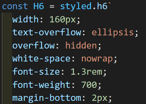 지난번에도 이와 같은 코드로 작성해 본 적 있는데 전혀 바뀌지 않아서 왜 그런가 한참 고민했던 적이 있었다. 그런데 알고 보니 이걸 쓰려면 명시적으로 넓이를 지정해주어야 한다는 걸 듣고, '그러니 지난번에 한참 고쳐도 안 됐지...'라고 시간낭비한 지난 시간이 아깝게 느껴졌다..ㅠㅠ white-space: nowrap은 텍스트가 길어서 부모 요소 안의 가로폭을 넘어가더라도 자동으로 줄바꿈이 일어나지 않게 해 줄 수 있는 속성이다. 이걸로 문장 전체를 한 줄로 만들고, overflow로 보이지 않는 부분은 잘라낸 다음, text-overflow: ellipsis로 (...) 처리하면 완성!
