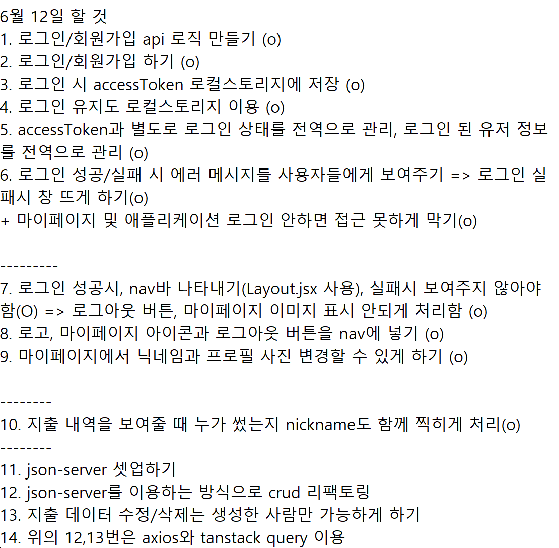 처음 발제날 들을 땐 상당히 빡빡한 일정인 것 같았는데, 인증/인가 기능을 구현한 이후는 뭔가 9부 능선 넘은 것 처럼 수월하게 풀렸다. 다만, 익숙하지 않은 Tanstack Query를 사용하는데 반갑지 않은 오류를 만나고, 아직도 access Token을 header에 추가하여 보내는 과정은 뭔가 두리뭉실하게 알고 있는 느낌이다.