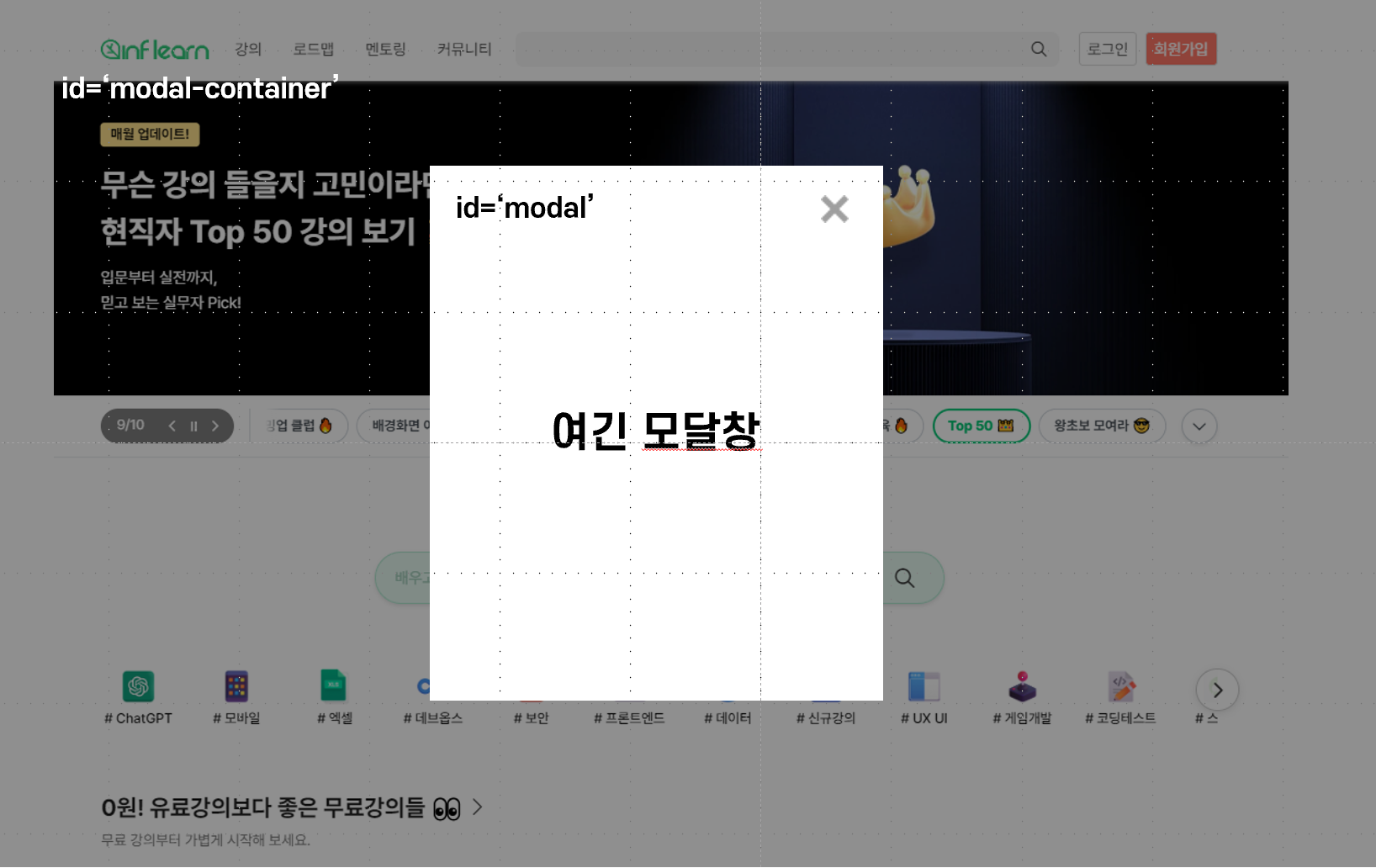 때문에 모달창 이외의 영역을 클릭해 모달창을 닫을 때는 모달창 이외의 영역을 표시하는 wrapper나 container의 변수를 항상 관성적으로 써왔습니다.